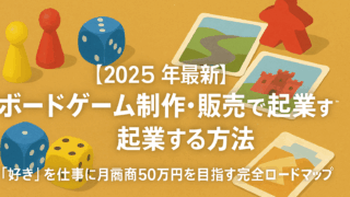 起業ノウハウ学科 【2025年最新】ボードゲーム制作・販売で起業する方法|「好き」を仕事に月商50万円を目指す完全ロードマップ 「自分の考えた、最高のゲームで、世界中を熱狂させたい」「ただ遊ぶだけじゃない、『創る側』になってみたい」「『好き』という情熱を、自分の手でビジネスに変えたい」もしあなたが、そんな風に感じているのなら、「ボードゲーム制作・販売」という事業は、... 起業ノウハウ学科