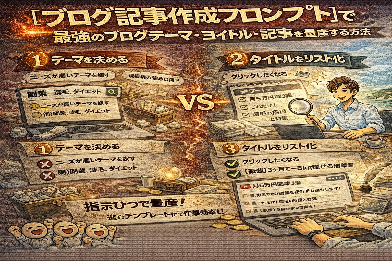 この記事は、これまで学んだ理論をAIに実装し、勝てるブログを爆速で構築するための、コピペOKなプロンプト集です。