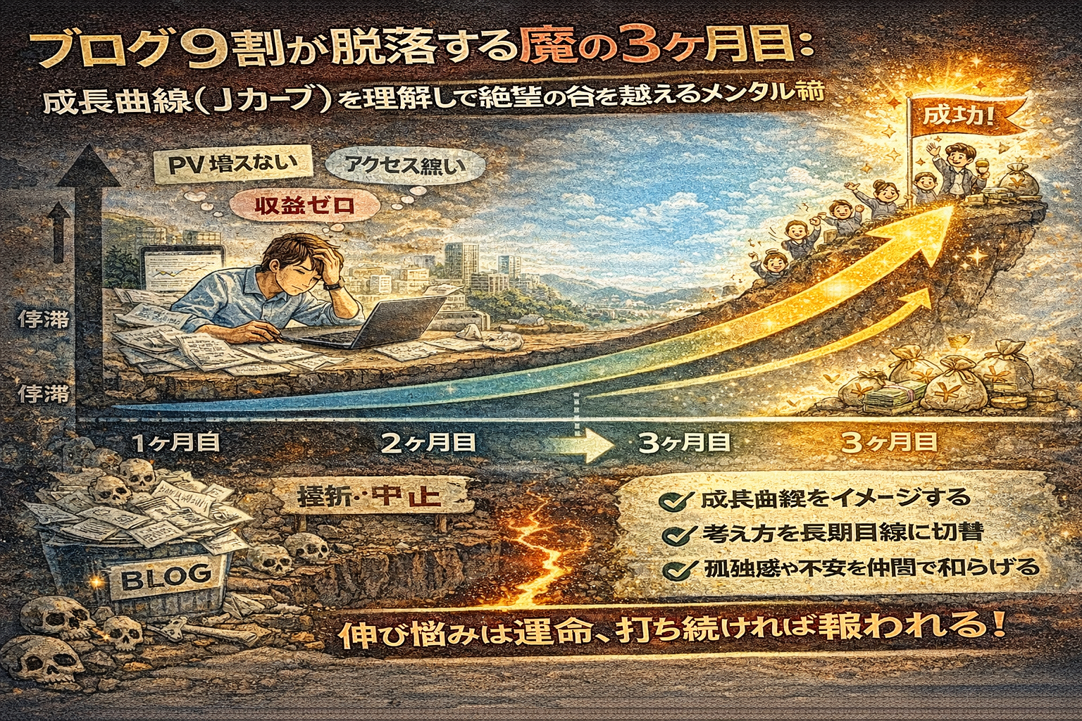 この記事は、あなたが最大の脱落ポイントである「魔の3ヶ月目」を乗り越え、その先にある爆発的な成長期へと到達するための、メンタル防衛講義です。