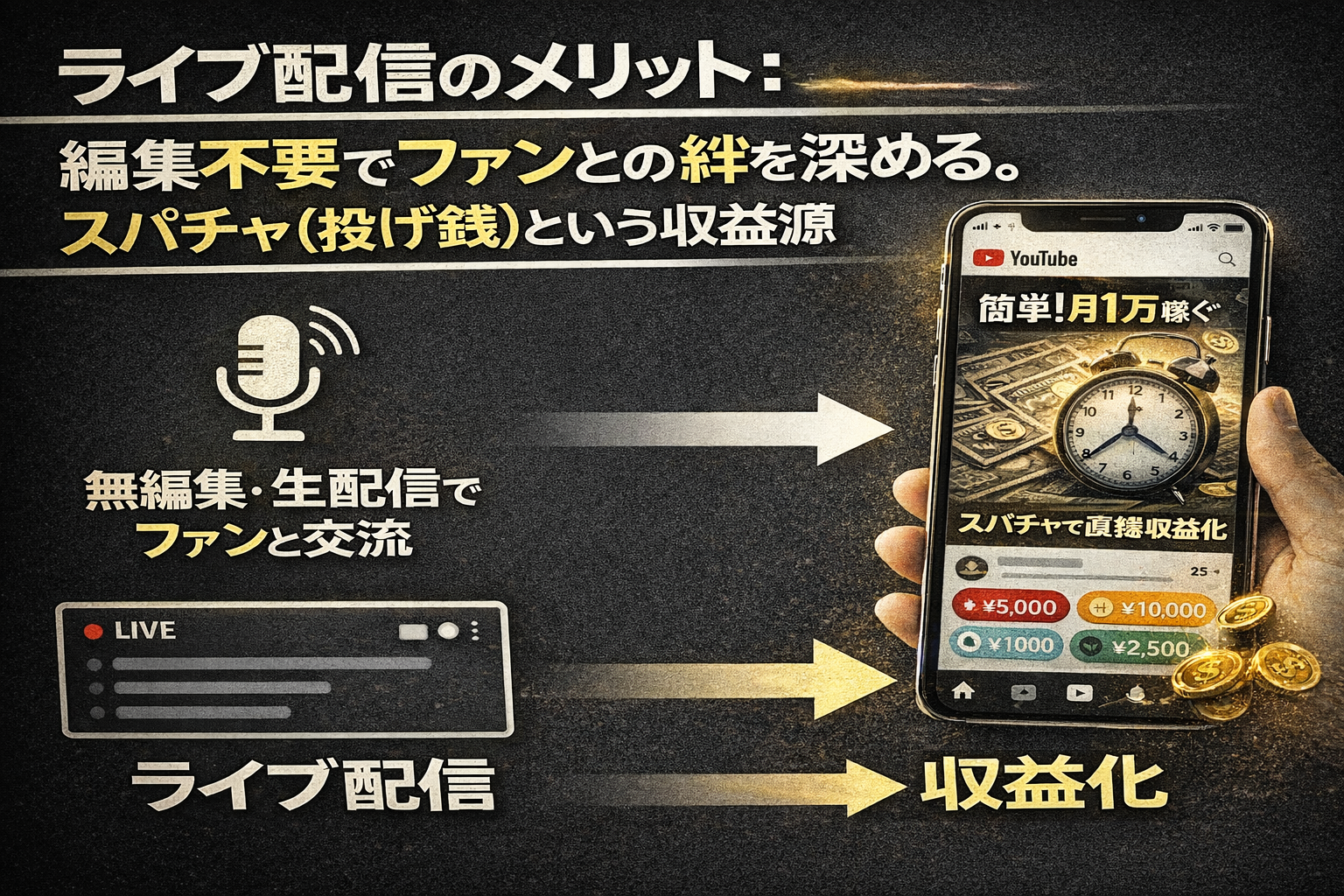 この記事は、編集地獄から解放され、濃いファンと熱い時間を共有し、スパチャ(投げ銭)という新たな収益源を手に入れるための、ライブ配信戦略講義です。