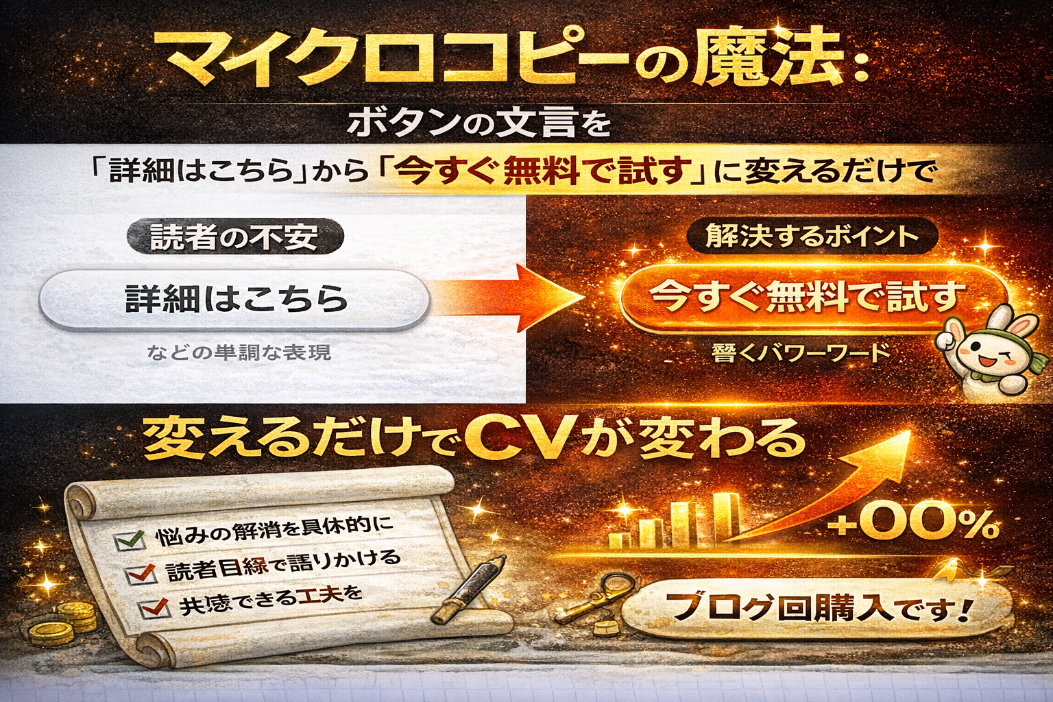 この記事は、その読者の指を魔法のように動かし、クリック率(CTR)と成約率(CVR)を劇的に跳ね上げるための、【マイクロコピー】の講義です。